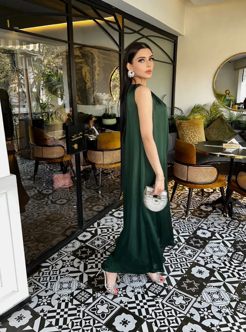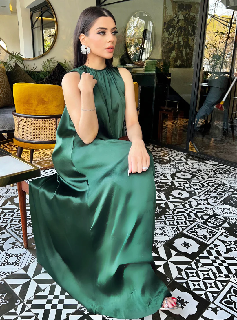 A modern pure-silk co-ord set with a fluid silhouette, paired with matching bell trousers for a sleek, contemporary finish. Stylish, versatile, and crafted for premium comfort.